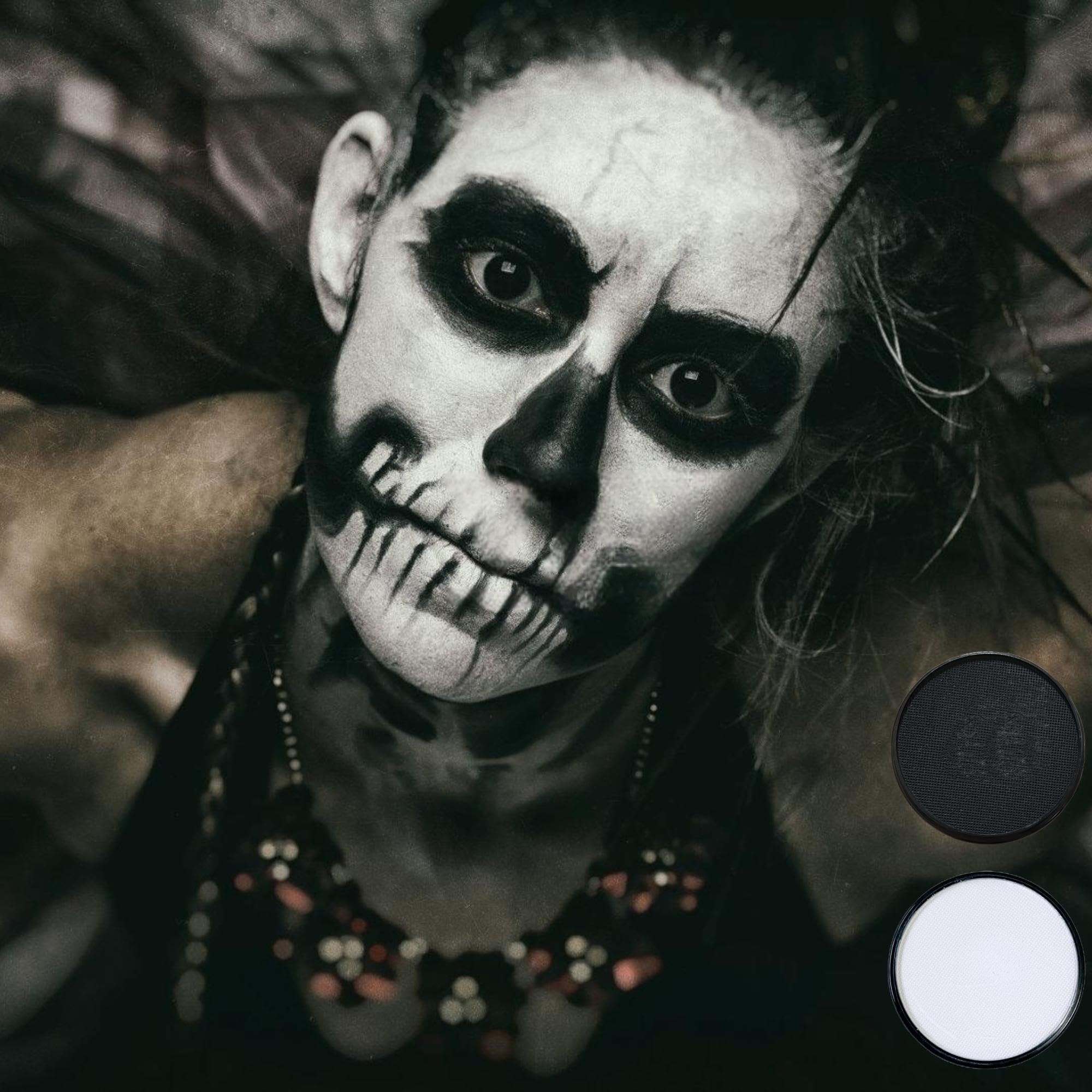 Amazon Com Black White Face Body Paint Set 2 Pcs Professional Halloween Face Painting Kit With Sponge For Costume Zombie Clown Cosplay Party Festivals Face Paint Sfx Halloween Makeup Kit Beauty Personal